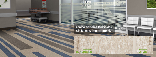 O Cordão de Solda Multicolor, exclusividade da Tarkett, possui o mesmo padrão do piso e, por isso, fica imperceptível na instalação. utilize o Cordão de Solda Multicolor com o iQ Optima para obter um visual único.